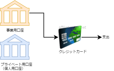 事業用のクレジットカード(引き落とし:プライベート口座)な場合