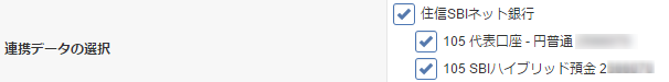 ▲「MFクラウド確定申告」で「住信SBIネット銀行」と連携すると、「SBIハイブリッド預金」口座も連携される |
