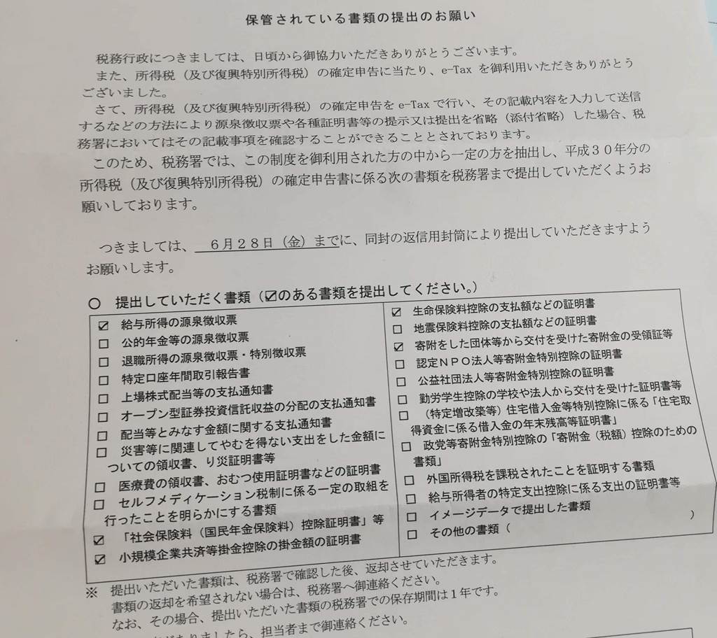 「e-taxしてるヤツの中からランダムで証拠書類を提出させることにしてるんだけど、今年はお前が当選したから提出しろよ」