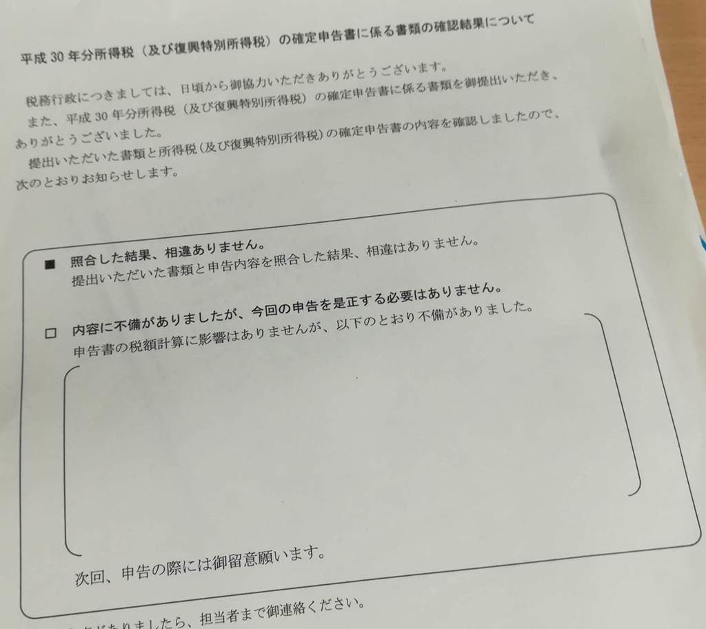 返送したあと、税務署から3回くらい電話がかかってきたんですが