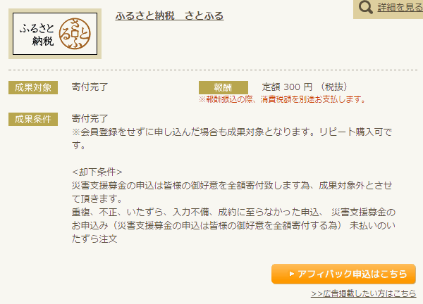 それで、ふるさと納税のセルフバック(自己アフィ)できるASPは、
