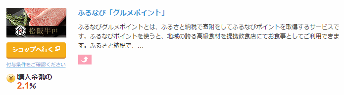 - ふるさと納税すると、「ふるなびグルメポイント」が貰える