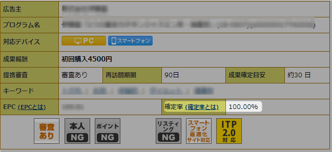 同じようなジャンルでも「発生はすべて確定するよ!」という神みたいな広告主もいれば↓