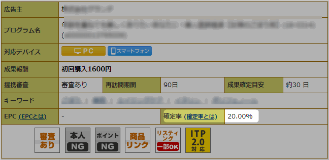 もちろん、確定率が低いのは「アフィリエイターが確定条件を満たす客を送客していないから」というのも理由の1つだと思いますけど