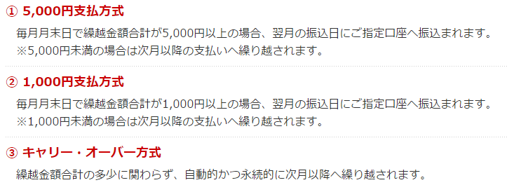 ▲引用:成果報酬の支払方法:アフィリエイトサイト(AS)会員サポート:アフィリエイトのA8.net |