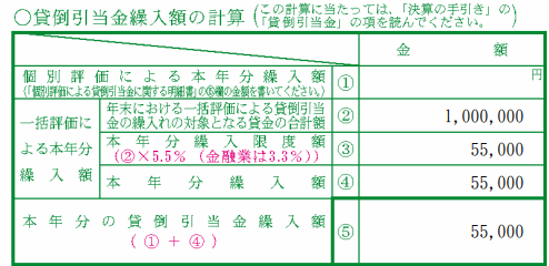 青色申告決算書の「貸倒引当金繰入額の計算」という項目に、