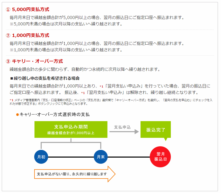 となっております。例)「1月1日~31日」の間に発生した報酬⇒「3月20日」前後のお支払い
