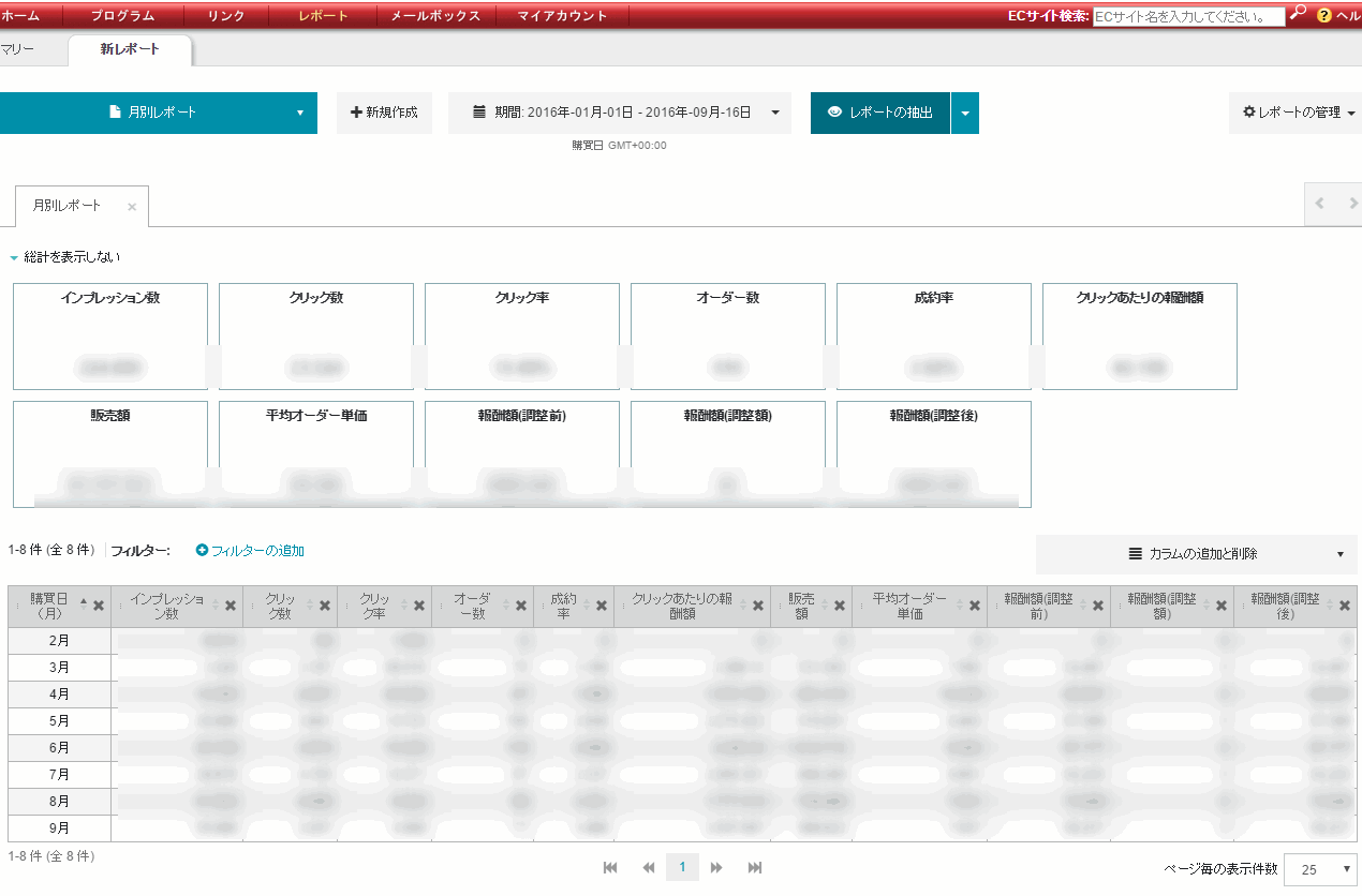 ちなみに、管理画面の「レポート」→「新レポート」から、