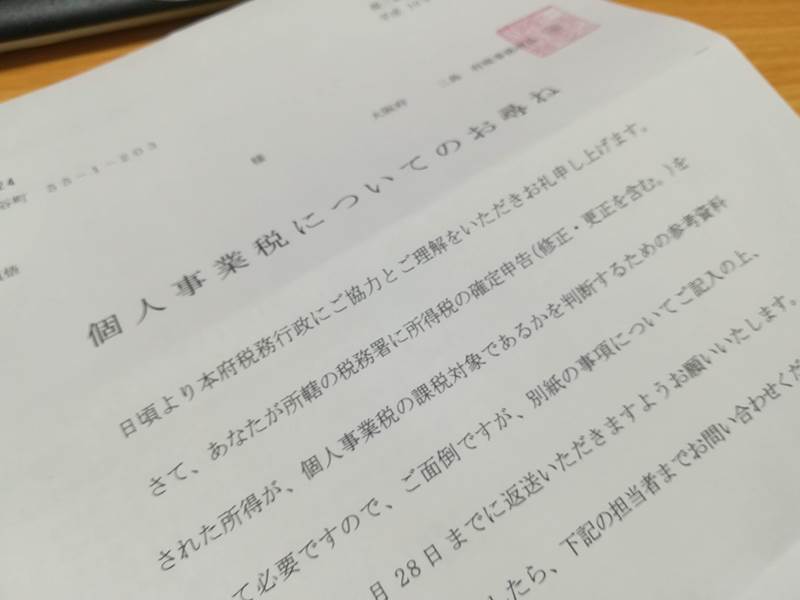 去年、所得が290万円を超えたので「個人事業税についてのお尋ね」が送られてきました。
