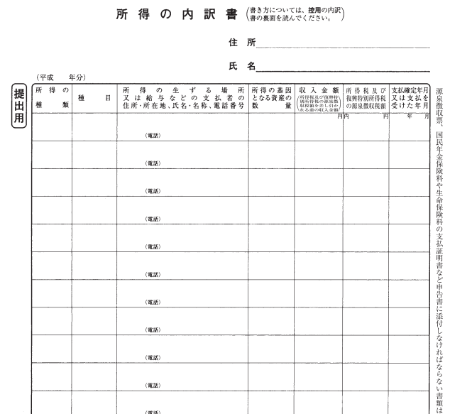 「所得の内訳書」は「所得の内訳」に書ききれない場合に使う