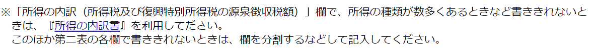 - 確定申告書 第2表の「所得の内訳」の欄に書ききれない場合
