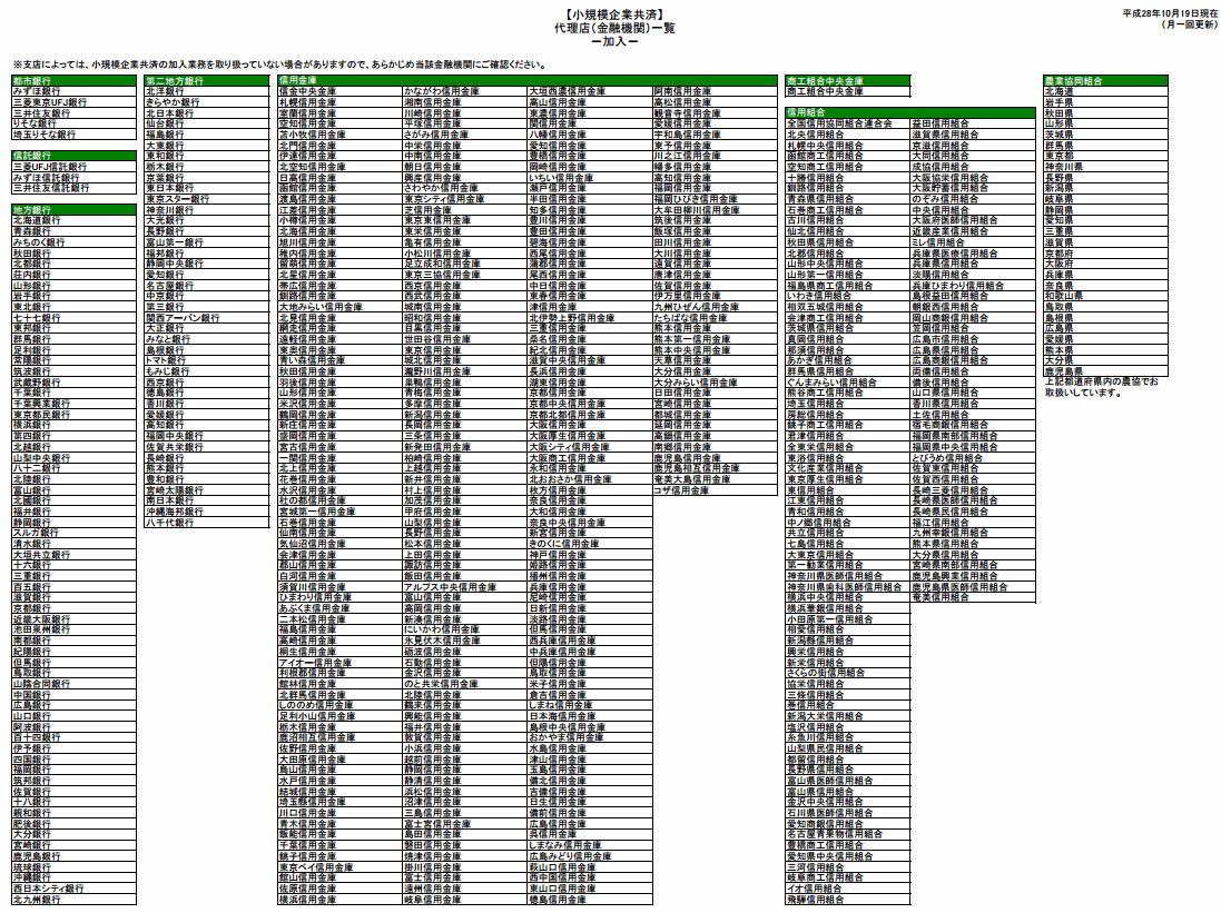対応してる銀行は、このページ(中小機構:小規模企業共済: 小規模企業共済 加入手続きの窓口)にある「代理店(金融機関)一覧~~~」っていうPDFを見れば分かる。