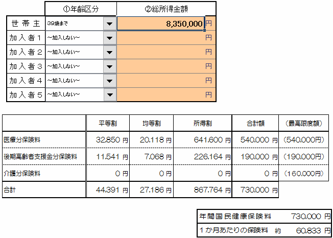 各自治体のホームページに行けば、「国民健康保険料_算出.xls」みたいなエクセルファイルが用意されてると思うので、それを使って計算します。