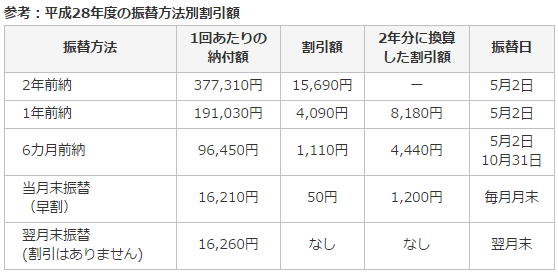 例えば、2016年度(平成28年)の場合、一括払いすると「191,030円」になります↓。