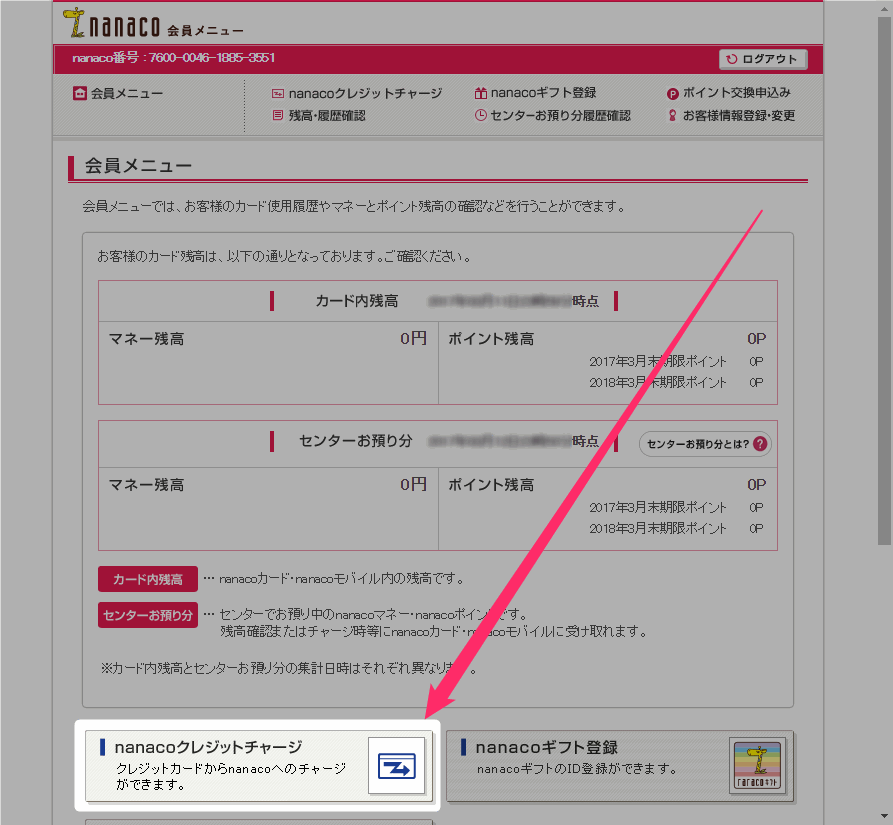 2枚目のnanacoカードのチャージに使用しているクレジットカードは普段使わないカードだから、なるべく2枚目は使いたくない・・。(´・ω・`)